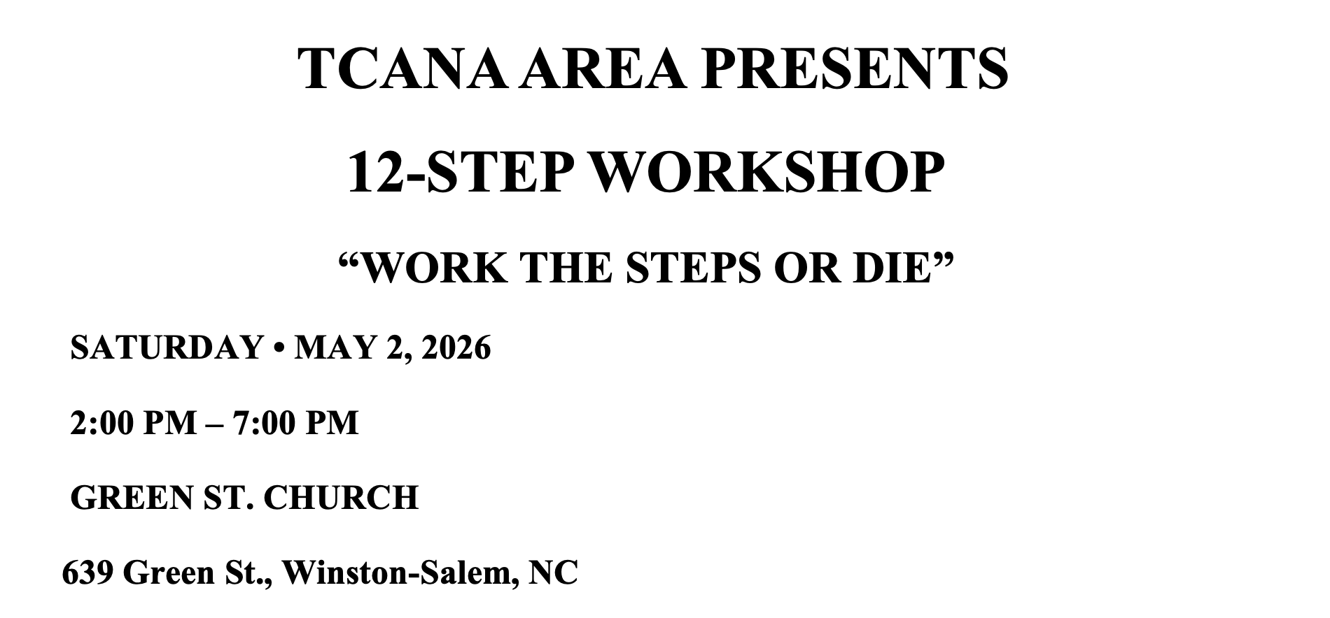 TCANA Area Presents: 12-step Workshop “Work The Steps Or Die”